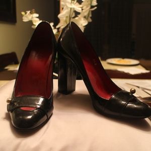 You are bidding on a beautiful pair of Gucci Naplak Leather High Heel Pumps done in Black Leather. Great for Spring. These are beautiful shoes accented with a Mary Jane Strap styling and Gucci GG Gold ball logos at the vamp.