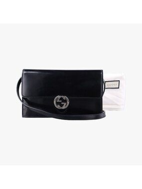 GUCCI Authentic Black Leather Shoulder Bag
