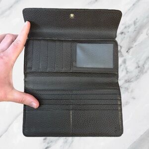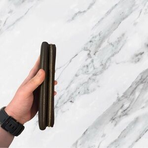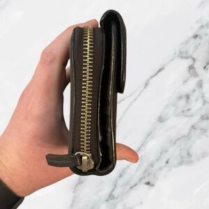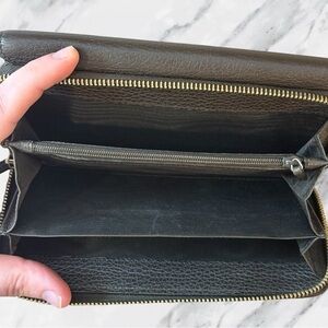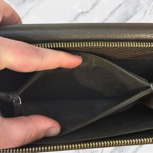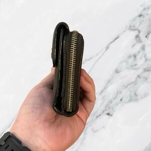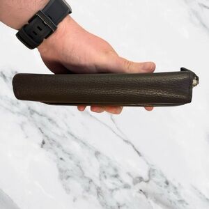 This authentic Gucci Conserved Genus wallet is crafted in premium leather and finished with the signature Interlocking G detail, a timeless emblem of the house. The full zip design opens to a spacious interior with multiple card slots, bill compartments, and a secure coin pocket, offering both elegance and practicality. Made in Italy with Gucci’s renowned craftsmanship, this piece carries a sleek, modern profile while maintaining classic sophistication. Pre-owned and conserved, it shows light signs of use consistent with age while remaining in amazing condition. Most notable call out is on the front on the other side of the button there is some darkening. A true luxury staple that balances heritage with everyday utility.