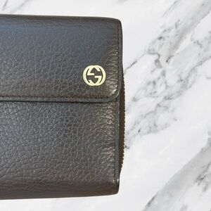 GUCCI Authentic Conserved Genus Interlocking G Calf Leather Full Zip Wallet