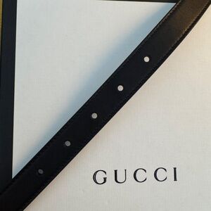 GUCCI Authentic GG Marmont Thin Belt in Black Leather. Includes original dust bag and box. Worn twice, in NEW condition. Fresh and clean from smoke free home.