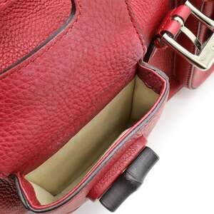 GUCCI Authentic Red Leather Bamboo Shoulder Bag