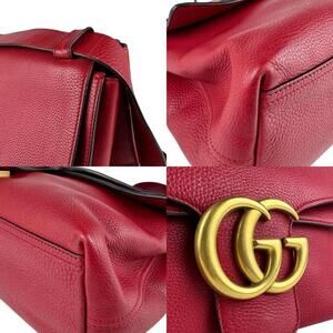GUCCI Authentic Red Leather GG Marmont Shoulder Bag