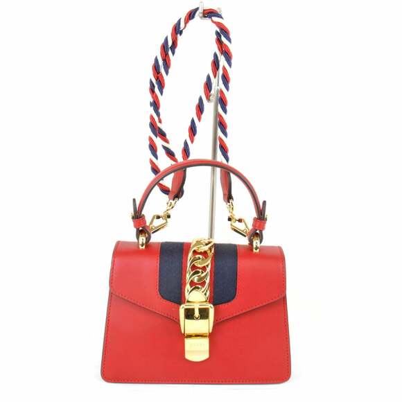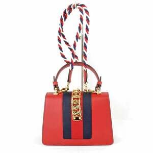 GUCCI Authentic Red Leather Sylvie Shoulder Bag