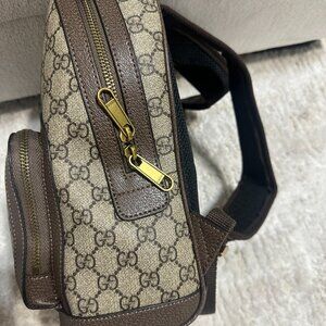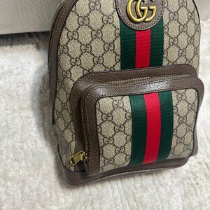 This Gucci GG Supreme Ophidia Backpack is the perfect mix of luxury and everyday style. Made with the classic beige/ebony monogram canvas, brown leather trim, and that bold red and green web stripe down the front. It’s got a front zip pocket, comfy padded straps, and a spacious interior with card slots and a zip pocket.