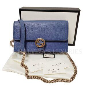 GUCCI BAG 510314 INTERLOCKING G CHAIN BLUE LEATHER CROSSBODY WALLET $1,550