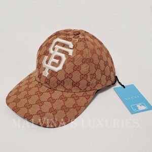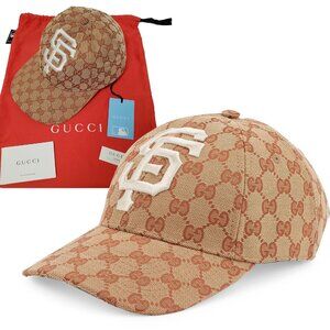 Unique Features: This GG Supreme canvas Gucci baseball hat is embroidered with San Francisco Giants patch at the front. Paneled crown, button top, curved brim. Adjustable closure from 55cm to 59cm, unisex style.