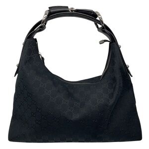 Gucci Black Horsebit GG Monogram Canvas Hobo Shoulder Bag