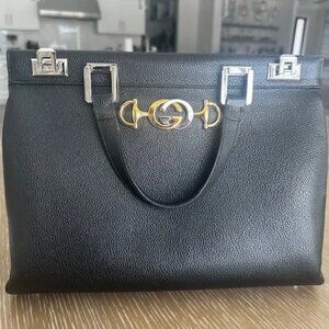 GUCCI BLACK LEATHER ZUMI TOP HANDLE MEDIUM, Authentic