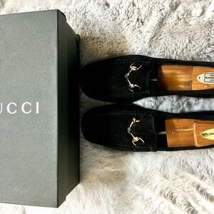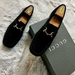 GUCCI BLACK SUEDE HORSEBIT LOAFERS EU SIZE 40E LEATHER SOLE BOX DUSTBAG MINT