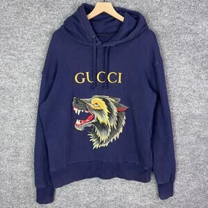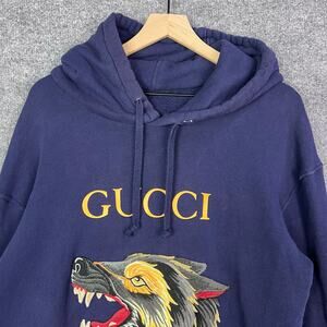 GUCCI BLUE WOLF EMBROIDERED HOODIE COTTON MADE IN ITALY SZ M