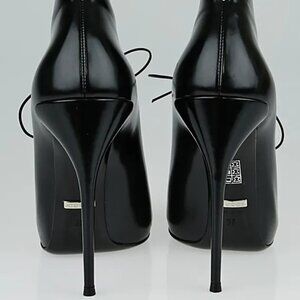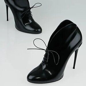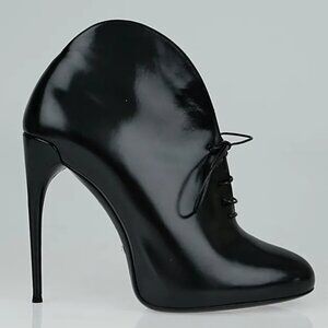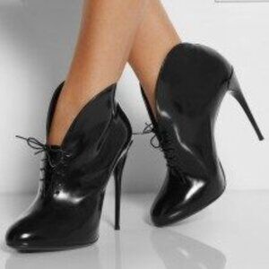 EXCELLENT CONDITION GUCCI KIM LACE UP PATENT LEATHER CURVED BOOTIES