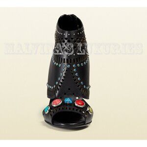 GUCCI BOOTIES LIKA LASER CUT BLACK LEATHER STONE SHOES BOOTS sz 38 US 8