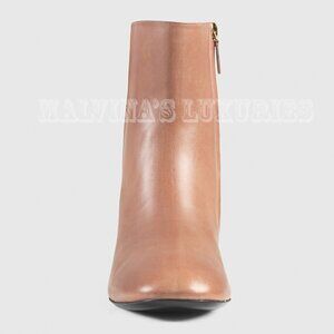 GUCCI BOOTS ANKLE ARIELLE GOLD HALF MOON CRYSTAL HEEL MAUVE LEATHER sz 38 / 8