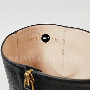 Unique Features: Black Leather Boots with interior side signature zipper and two tone (silver and gold) interlocking G accent. Comfortable chunky heel. Signature rubber sole.