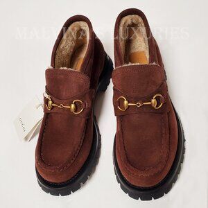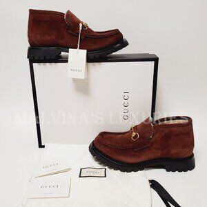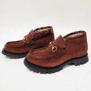 GUCCI BOOTS MENS SHEARLING LINED SUEDE HORSEBIT LOAFER SHOES BEE