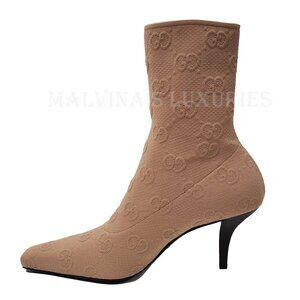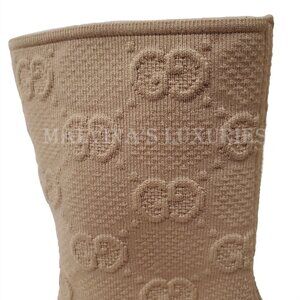 GUCCI BOOTS TOM TECHNICAL GG LOGO NUDE JERSEY DOUBLE G LOGO HEEL sz 38 8