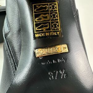 GUCCI Baby Bit Black Leather Boot Size 37.5 High Heel Bootie Square Toe Horsebit
