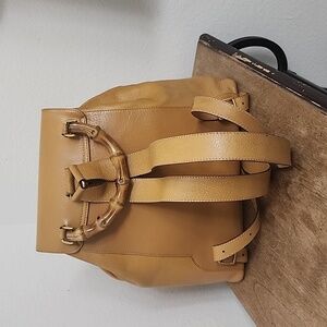 GUCCI Backpack Leather Mustard Yellow with Bamboo handle