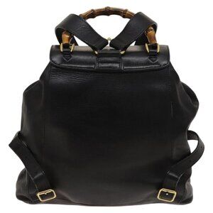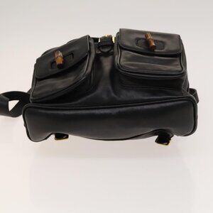 GUCCI Bamboo Backpack Leather Black Gold 003 2058 0016 Auth sw598