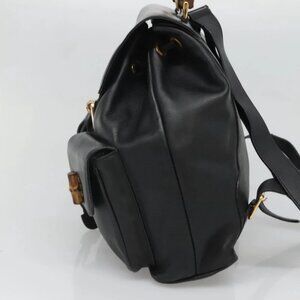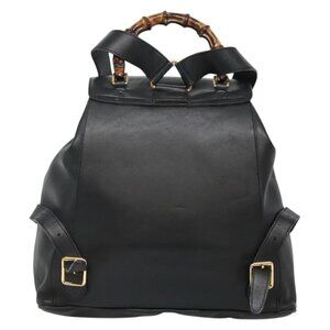 GUCCI Bamboo Backpack Leather Black Gold