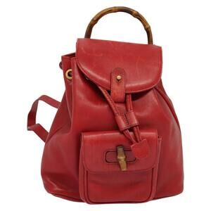 GUCCI Bamboo Backpack Leather Red Gold 003 3444 003 3444