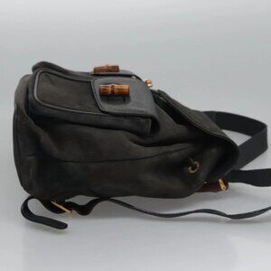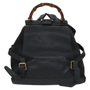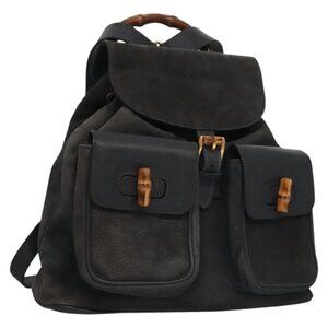 GUCCI Bamboo Backpack Suede Leather Blue Gray gold