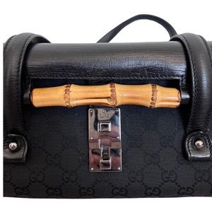 GUCCI Bamboo Bullet Bag - Black Canvas and Leather w/ Silver-tone Hardware