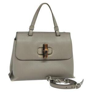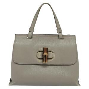 GUCCI Bamboo Daily Hand Bag Leather Gray Silver