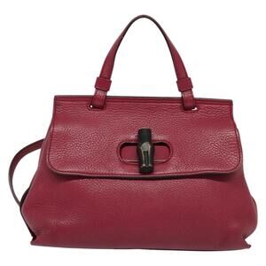 GUCCI Bamboo Daily Hand Bag Leather Pink Silver