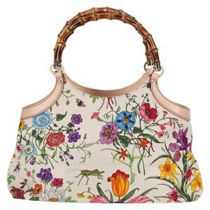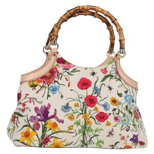 GUCCI Bamboo Flora Shoulder Bag Canvas Multicolor Gold