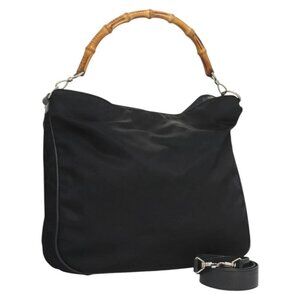 GUCCI Bamboo Hand Bag Canvas 2way Navy Silver