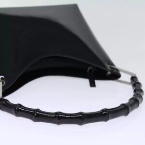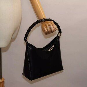GUCCI Bamboo Hand Bag Enamel Black Auth