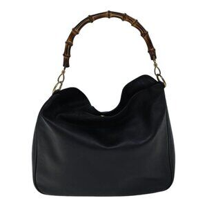 GUCCI Bamboo Hand Bag Leather 2way Black Auth