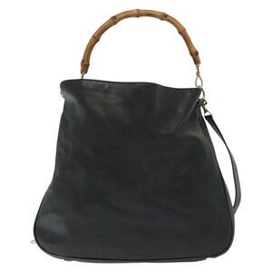 GUCCI Bamboo Hand Bag Leather 2way Black Gold 001 2852 1577 0 Auth ep10073