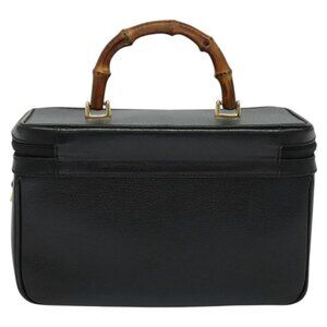 GUCCI Bamboo Hand Bag Leather 2way Black Gold 013 2122 2491 Auth 125704