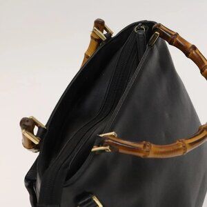 GUCCI Bamboo Hand Bag Leather 2way Black Gold