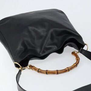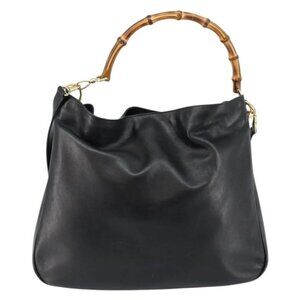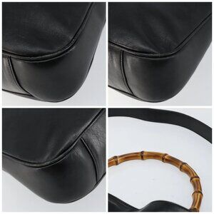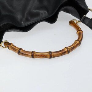 GUCCI Bamboo Hand Bag Leather 2way Black Gold