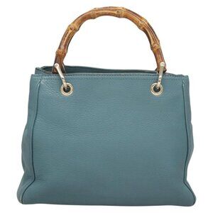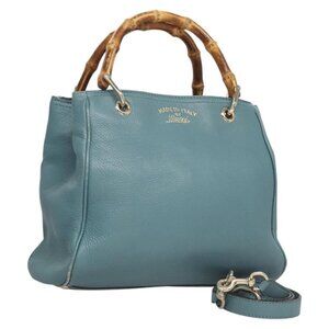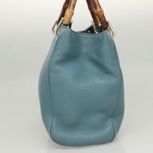 GUCCI Bamboo Hand Bag Leather 2way Blue Silver 336032 Auth 121645