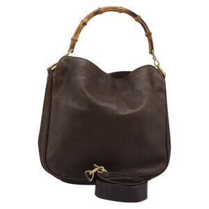GUCCI Bamboo Hand Bag Leather 2way Brown Gold 001 1998 1638 Auth 111266
