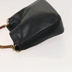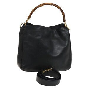 GUCCI Bamboo Hand Bag Leather 2way Navy Gold 001 3444 1638 Auth BA3439