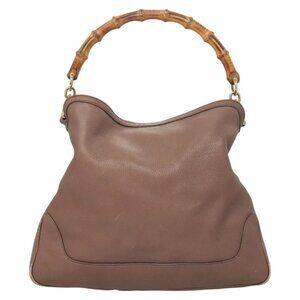 GUCCI Bamboo Hand Bag Leather 2way Pink Gold