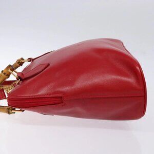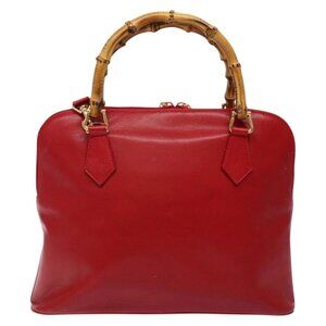 GUCCI Bamboo Hand Bag Leather 2way Red Gold