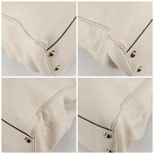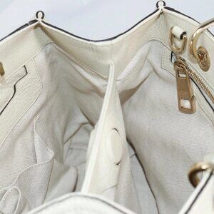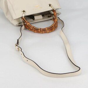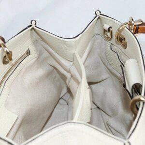 GUCCI Bamboo Hand Bag Leather 2way White Gold 336032 Auth 135213V