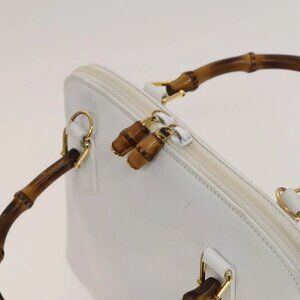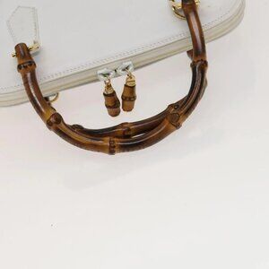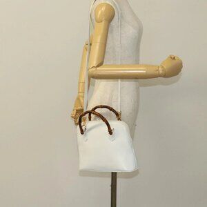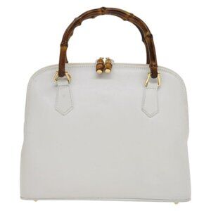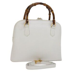 GUCCI Bamboo Hand Bag Leather 2way White Gold