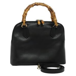 GUCCI Bamboo Hand Bag Leather Black Gold 000 2865 000 2865