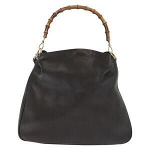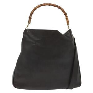 GUCCI Bamboo Hand Bag Leather Black Gold 001 001