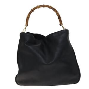 GUCCI Bamboo Hand Bag Leather Black Gold 001 2113 001 2113