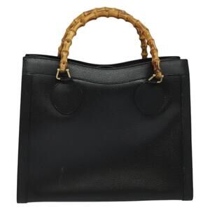 GUCCI Bamboo Hand Bag Leather Black Gold 002 002