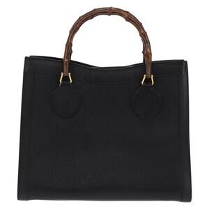 GUCCI Bamboo Hand Bag Leather Black Gold 002 1095 002 1095